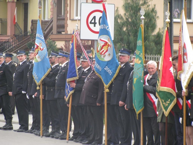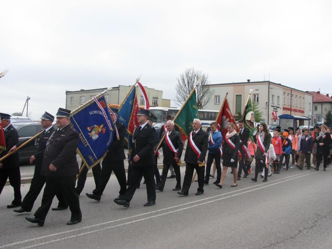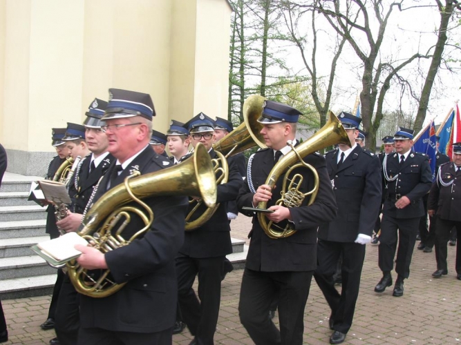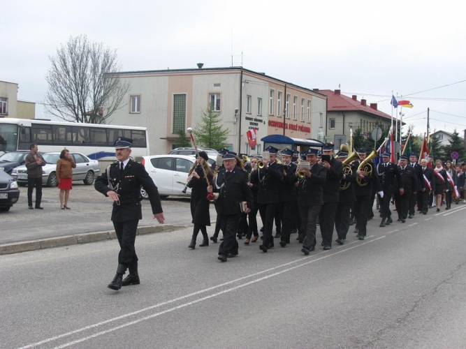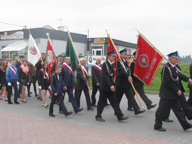 Po jej zakończeniu orkiestra Ochotniczej Straży Pożarnej przeprowadziła poczty sztandarowe oraz wszystkich uczestników na miejsce dalszej celebry.