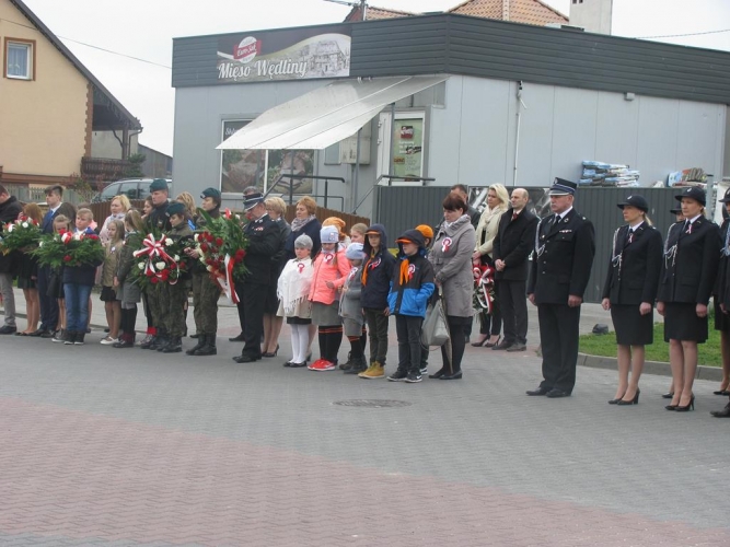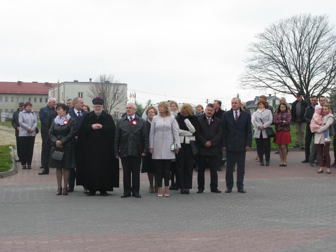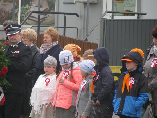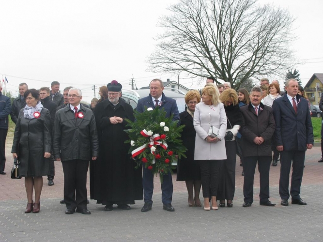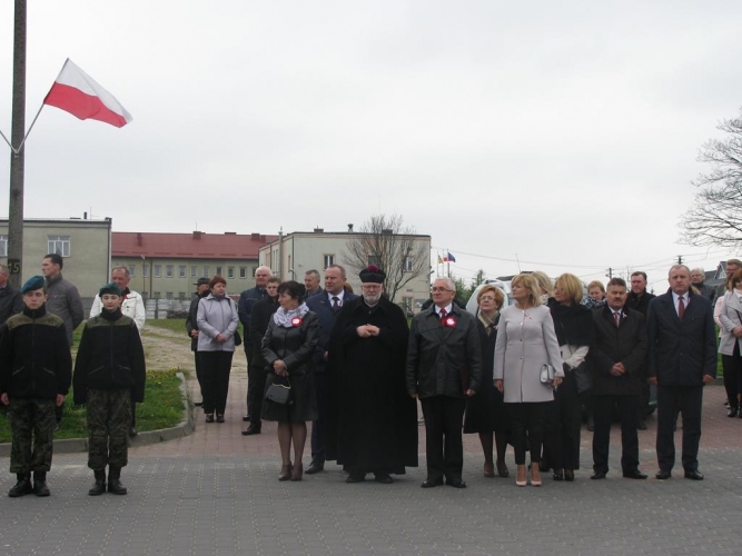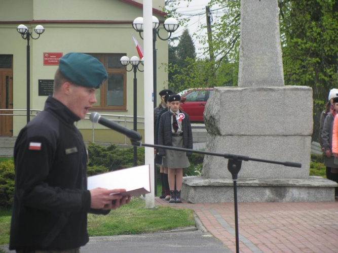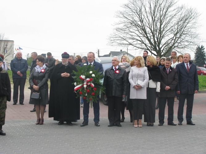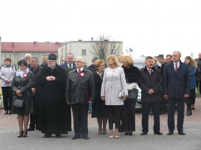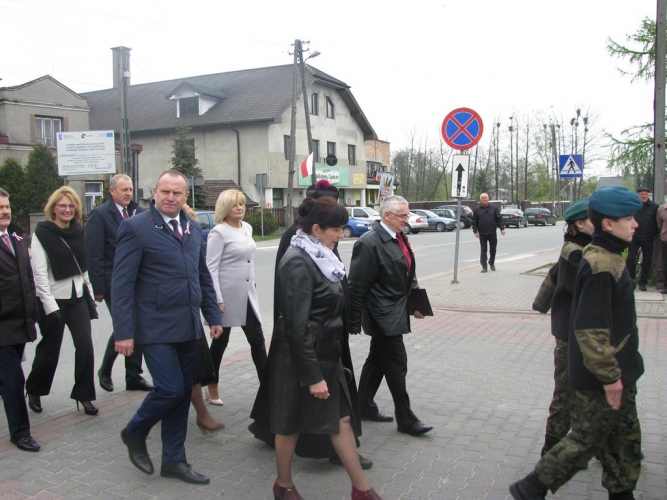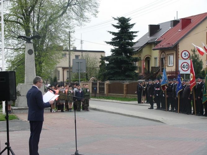 Po odegraniu hymnu narodowego i wciągnięciu flagi państwowej na maszt, przemówienie okolicznościowe wygłosił Wójt Gminy - Tadeusz Józwik.