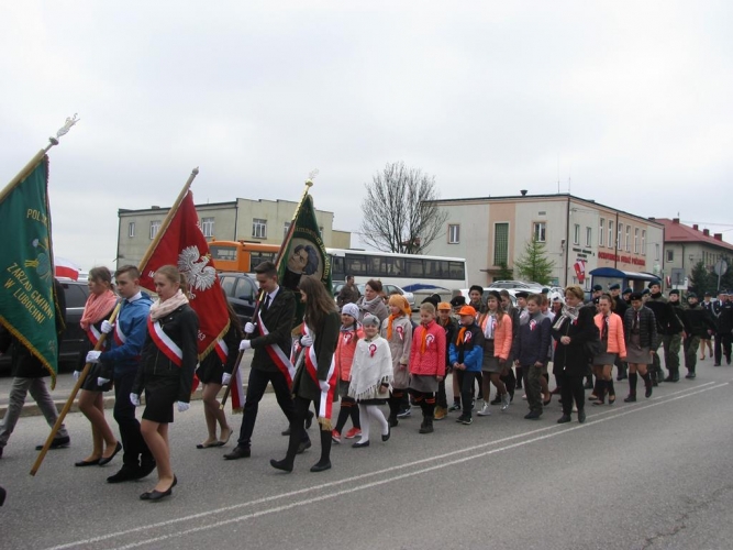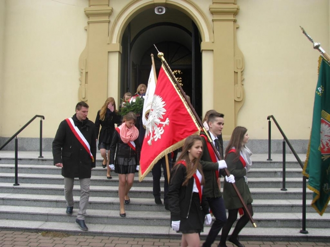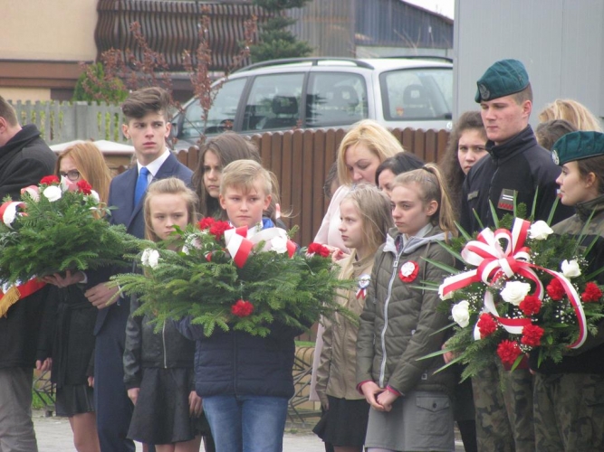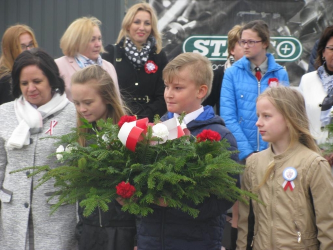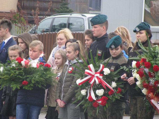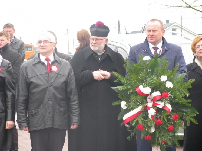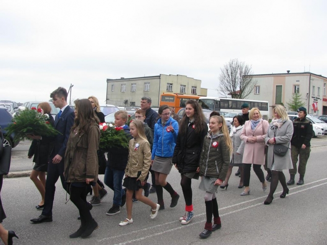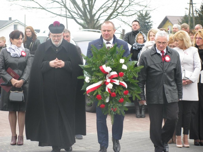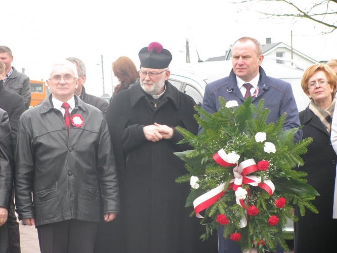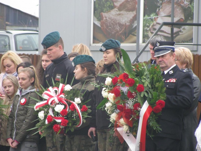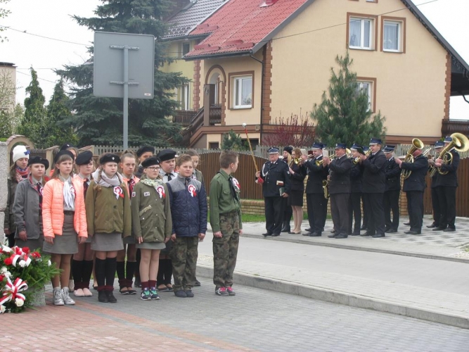 Po odegraniu hymnu narodowego i wciągnięciu flagi państwowej na maszt, przemówienie okolicznościowe wygłosił Wójt Gminy - Tadeusz Józwik.