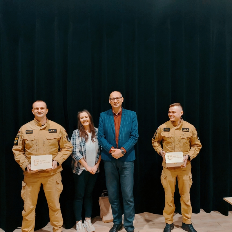 mł. kpt. Sławomir Stolińskiemu i kpt. Hubercie Rogala z Komendy Powiatowej Państwowej Straży Pożarnej w Tomaszowie Maz.