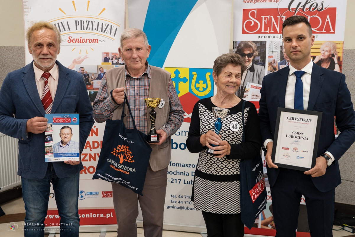 Podczas ceremonii nastąpiło oficjalne wręczenie Certyfikatu Gmina Przyjazna Seniorom, który jest potwierdzeniem działań i polityk skierowanych na wsparcie seniorów na poziomie lokalnym. Certyfikat ten jest wyróżnieniem dla gmin, które realizują działania sprzyjające aktywizacji, integracji oraz poprawie jakości życia osób starszych. Z rąk Pana Marka Plicha - Ambasadora Głosu Seniora Certyfikat potwierdzający oficjalne dołączenie gminy do elitarnego grona samorządów wspierających seniorów, odebrał Zastępca Wójta Gminy Lubochnia, Pan Łukasz Świech.
