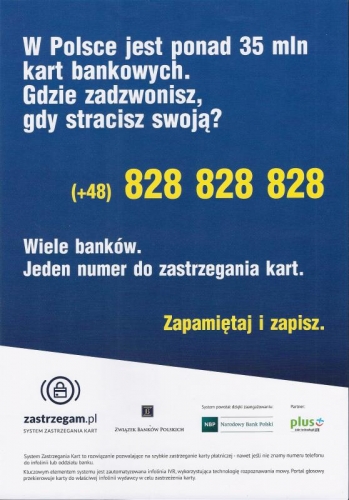 Pokazane poniżej logotypy przedstawiają Sponsorów dodatkowej, społecznej Kampanii Informacyjnej promującej System DZ. Ich szczególne potraktowanie na niniejszej stronie i w wydawanych materiałach informacyjnych jest wyrazem podziękowania ze strony Związku Banków Polskich za wkład w promocję idei zabezpieczenia nas wszystkich przed przestępstwami z wykorzystaniem cudzej tożsamości.