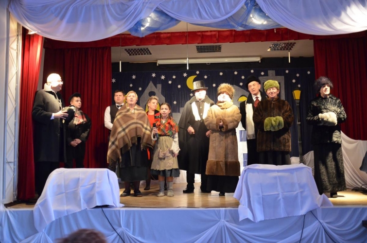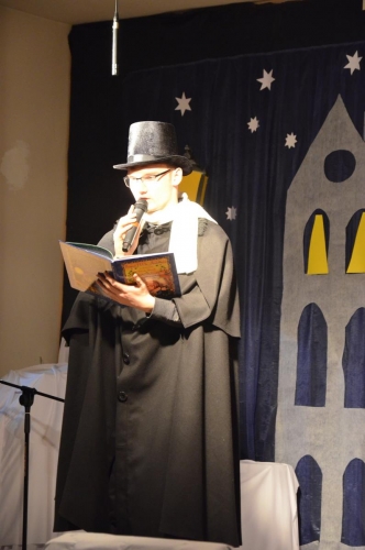 Następnie aktorzy grupy teatralnej  pod kierunkiem Pani Anny Myszewskiej zaprezentowali  się we wzruszającej sztuce pt. „Dziewczynka z zapałkami” na podstawie jednej z  najsmutniejszych  baśni Hansa Christiana Andersena.