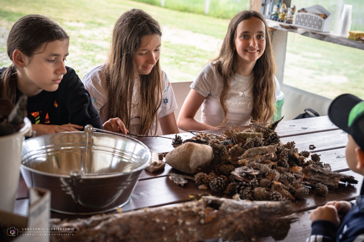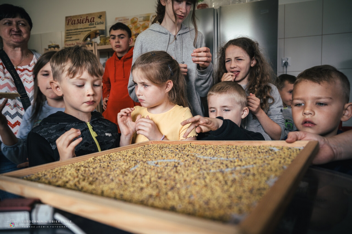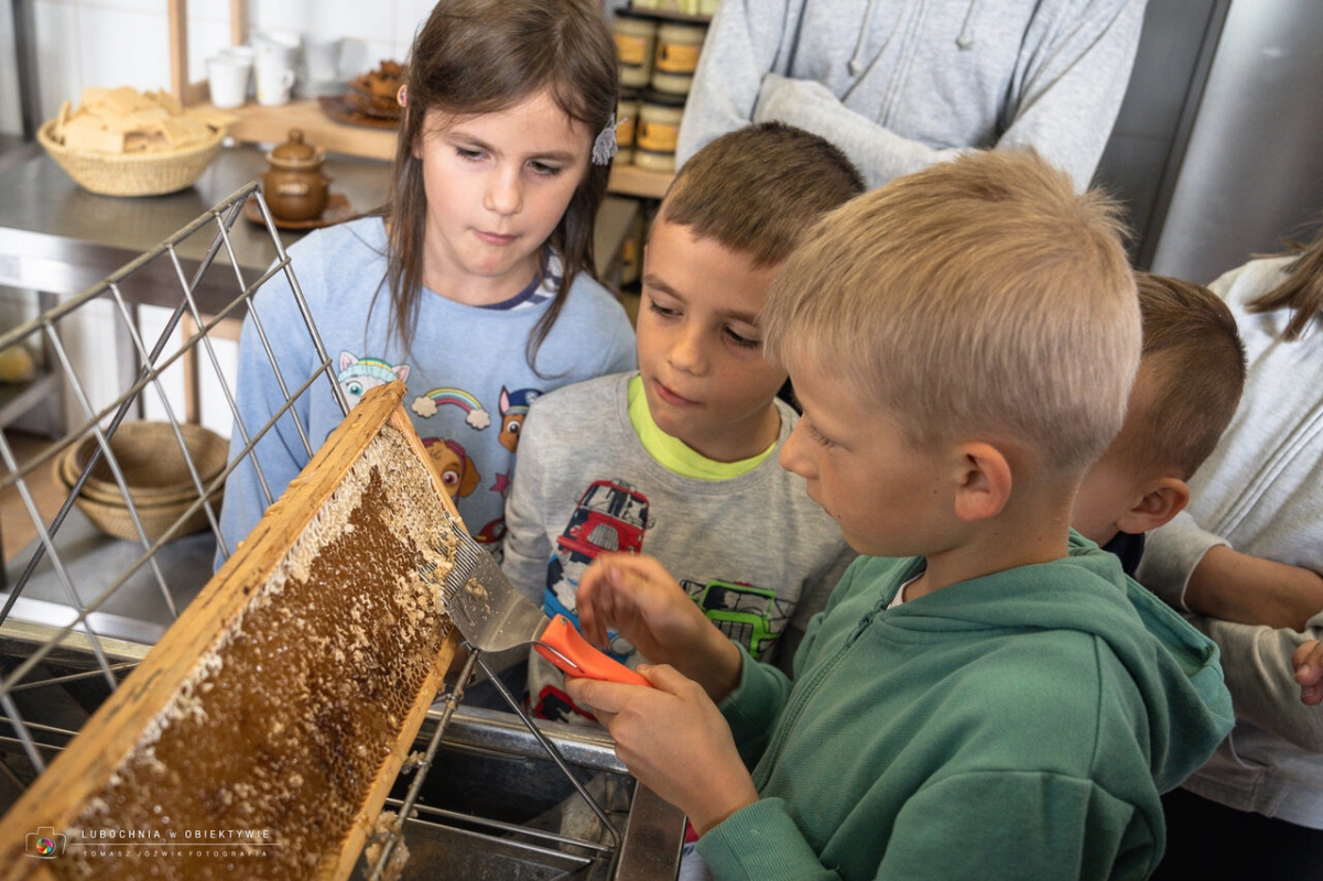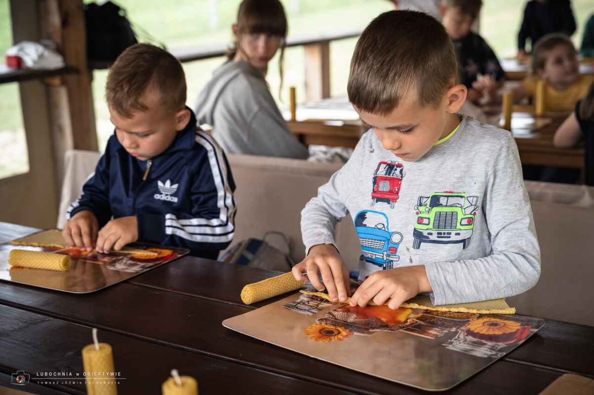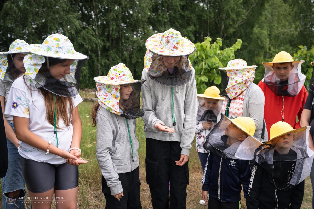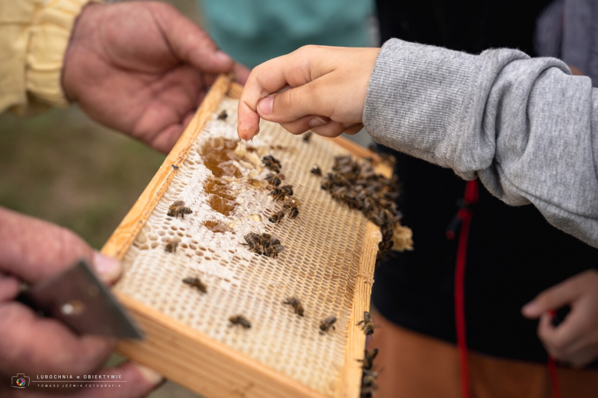 6. Ostatnim działaniem projektowym była wycieczka do pasieki, połączona ze zwiedzaniem oraz warsztatami budowania poidełek dla owadów oraz wytwarzania świec z wosku pszczelego.