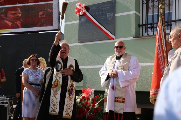 W dalszej części uroczystości miał miejsce kolejny podniosły moment – odsłonięcie ufundowanej przez samorząd i mieszkańców Gminy Lubochnia tablicy pamiątkowej poświęconej  osobie patrona Kompleksu oraz upamiętniającej  to ważne wydarzenie. Odsłonięcia tablicy dokonali: Wiesława Szczepańska – małżonka Jana Szczepańskiego, Dariusz Klimczak – Wicemarszałek Województwa Łódzkiego, Tadeusz Józwik – Wójt Gminy Lubochnia, Tadeusz Skoneczny – Przewodniczący Rady Gminy Lubochnia,  oraz Jerzy Rybicki – mistrz olimpijski oraz wieloletni przyjaciel Jana Szczepańskiego. Uroczystego poświęcenia tablicy pamiątkowej dokonał ks. Tomasz Bojanowski – proboszcz parafii Lubochnia, ks. Stanisław Kuć, były mistrz Europy w boksie w wadze muszej, oraz ks. Mirosław Mikulski – Kapelan Polskich Bokserów, który przyjechał na uroczystość wraz ze sportowcami.