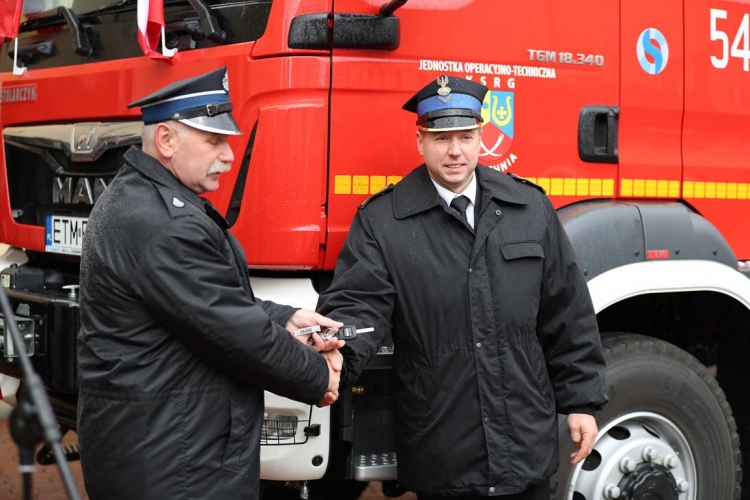 W dniu 30 września br. odbyło się uroczyste przekazanie strażakom i poświęcenie nowego wozu ratowniczo-gaśniczego marki MAN TGM 18.340 z napędem 4x4.