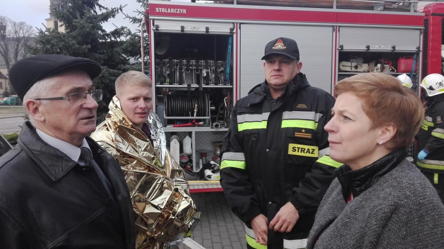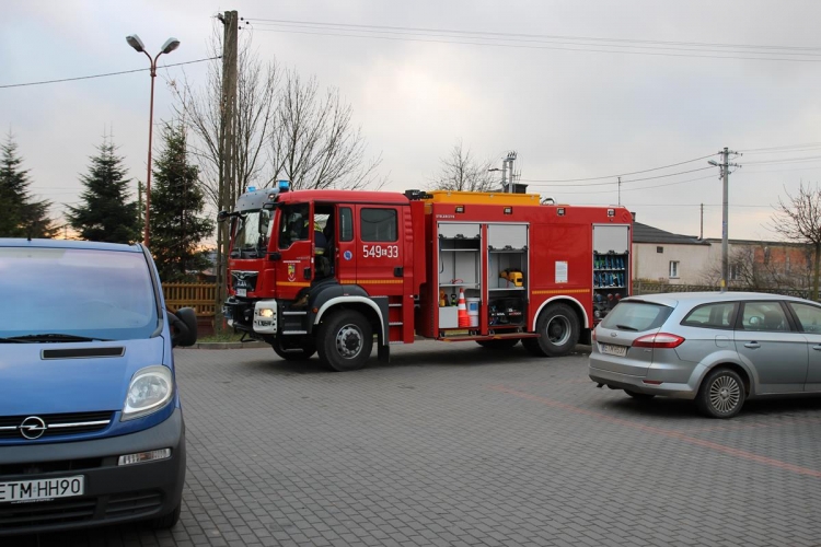 O pożarze w budynku Urzędu Gminy, zostaje powiadomiona PSP w Tomaszowie Maz. Dyspozytor PSK dysponuje najbliższą jednostkę OSP w Lubochni. Osoby znajdujące się w budynku udają się w miejsce zbiórki do ewakuacji. Po przeliczeniu stanu osób ewakuowanych, stwierdzono brak jednej osoby i niezwłocznie poinformowano o tym fakcie kierującego akcją.