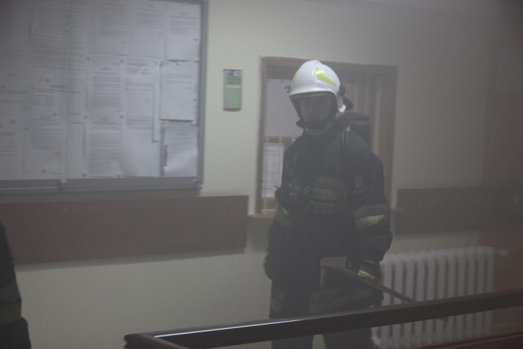 Z nieznanych przyczyn dochodzi do pożaru na pierwszej kondygnacji budynku Urzędu Gminy w Lubochni. Pożar wybucha w pomieszczeniu kasowym, wydzielając dużo dymu (prawdopodobne zwarcie elektryczne w czajniku bezprzewodowym). W pomieszczeniu nikt się nie znajdował. W tym samym czasie na pierwszej kondygnacji przebywa jeszcze około 20 osób. Wójt Gminy Lubochnia ogłasza ewakuację budynku urzędu do wyznaczonego punktu ewakuacji w Gminnym Centrum Kultury w Lubochni. Jeden z pracowników podejmuje próbę ugaszenia pożaru podręcznym sprzętem gaśniczym. W trakcie gaszenia osoba zostaje podtruta dymem i nie jest w stanie samodzielnie opuścić obiektu.