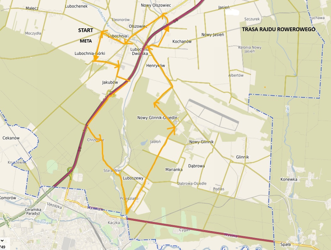 Trasa rajdu będzie przebiegać następująco: START Stadion LKS Lubochnia - Lubochnia Górki - Lubochnia - Jakubów - Chrzemce - Luboszewy - Nowy Glinnik-Osiedle - Henryków - Nowy Olszowiec - Olszowiec - Lubochnia - META Stadion LKS Lubochnia.