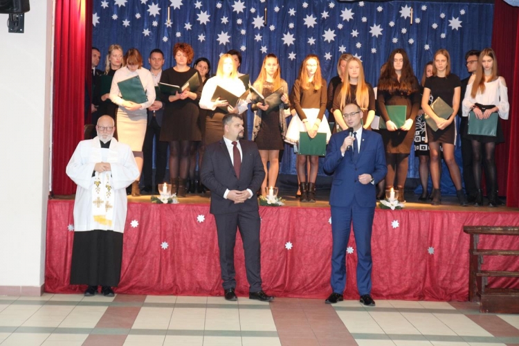 Po powitaniu gości Wójt Gminy Piotr Majchrowski wraz z Przewodniczącym Rady Gminy Pawłem Bachura złożyli wszystkim zebranym oraz mieszkańcom gminy życzenia świąteczne i noworoczne. Proboszcz Parafii Lubochnia ks. dziekan Tomasz Bojanowski odprawił wspólną modlitwę, po której zebrani przełamali się opłatkiem składając wzajemnie życzenia.