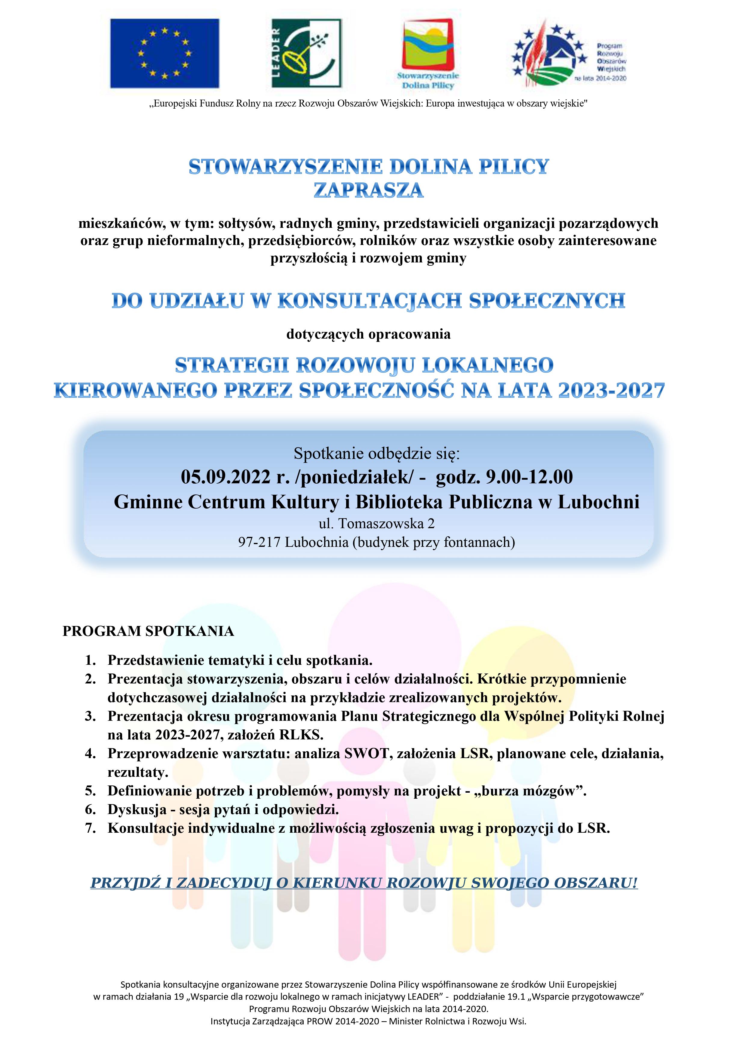Stowarzyszenie Dolina Pilicy zaprasza na konsultacje dot. opracowania Strategii Rozwoju Lokalnego