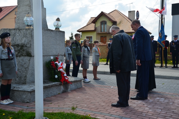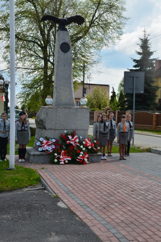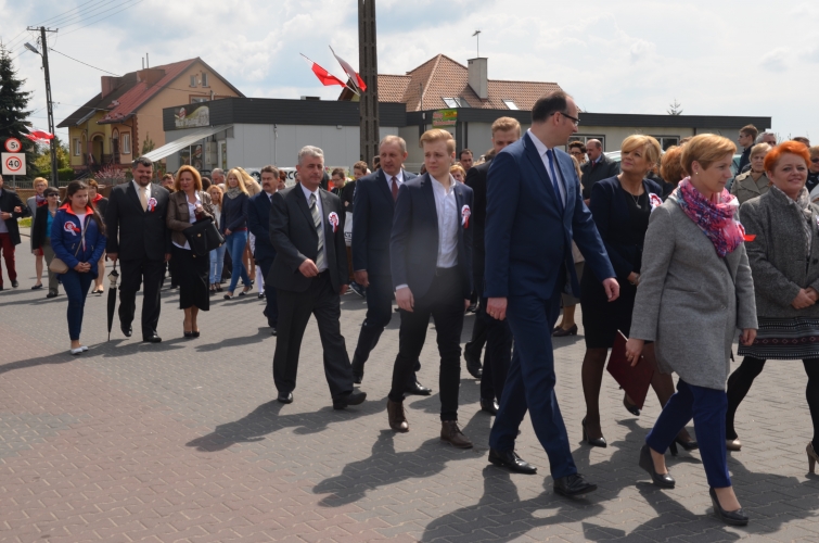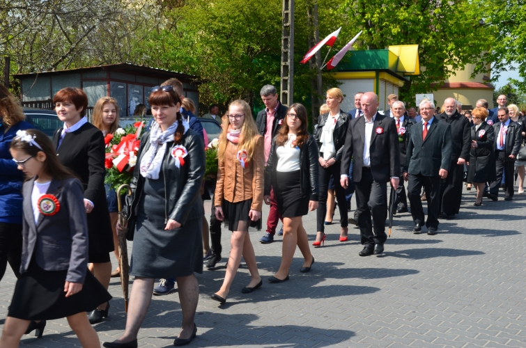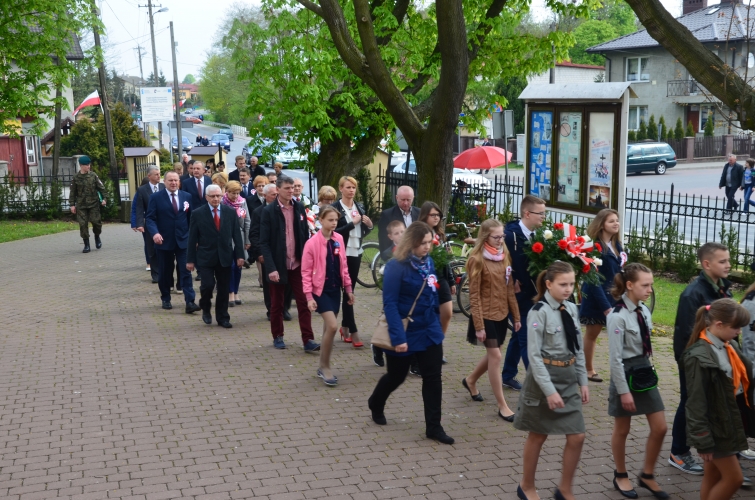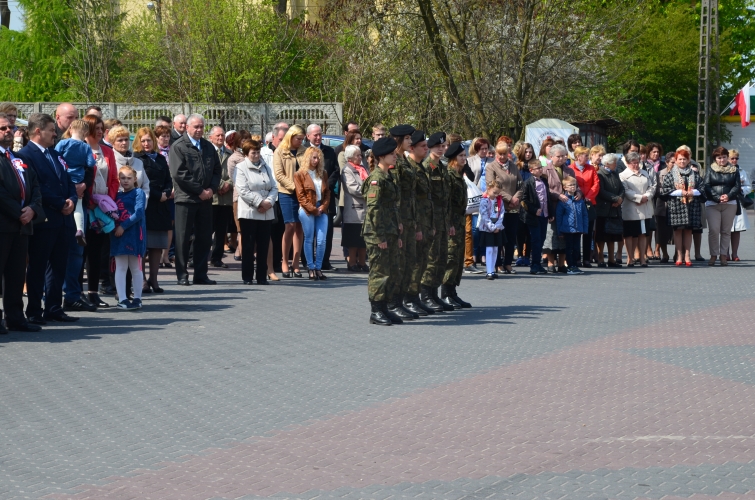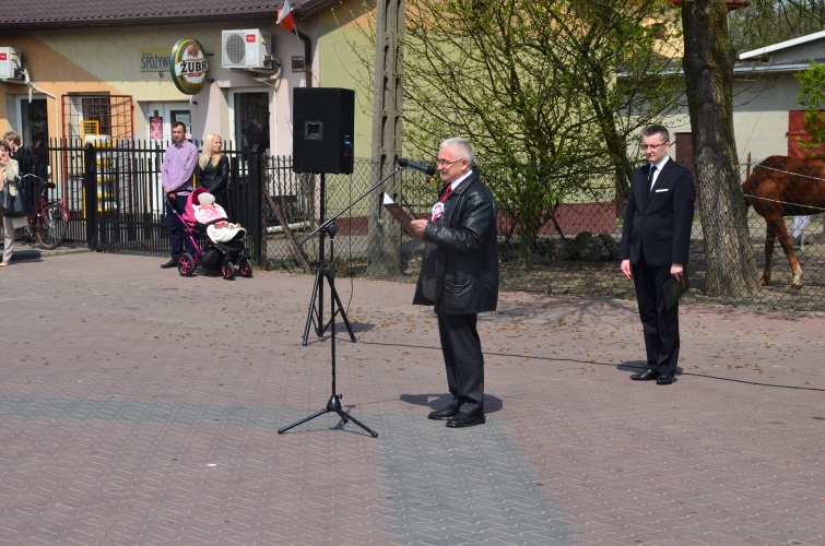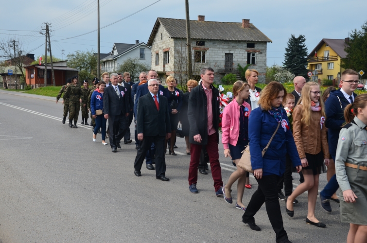 Po odegraniu hymnu narodowego i wciągnięciu flagi państwowej na maszt przemówienie okolicznościowe wygłosił Wójt Gminy Lubochnia Pan Tadeusz Józwik. Wszystkim zebranym przypomniał, że Ustawa Rządowa z 3 maja 1791 roku jest jednym z filarów, na którym możemy budować obecnie nasz kraj. Innym bardzo ważnym wydarzeniem dziejowym w historii naszego kraju, wspomnianym przez Wójta Gminy, był chrzest Mieszka I, którego 1050 rocznicę obchodzimy w tym roku.