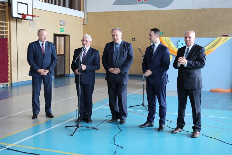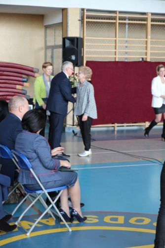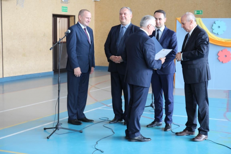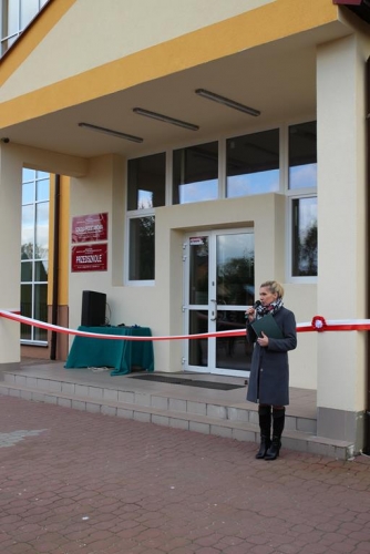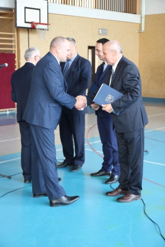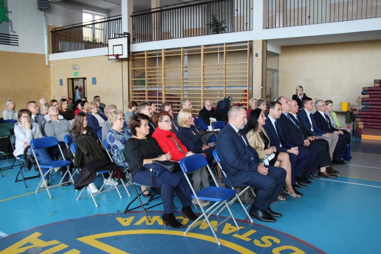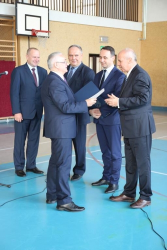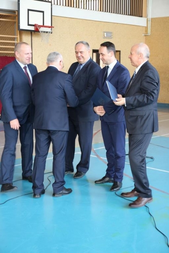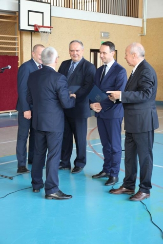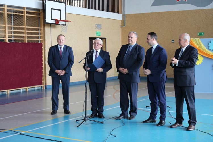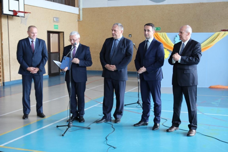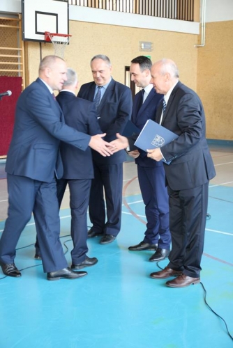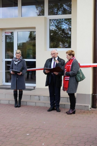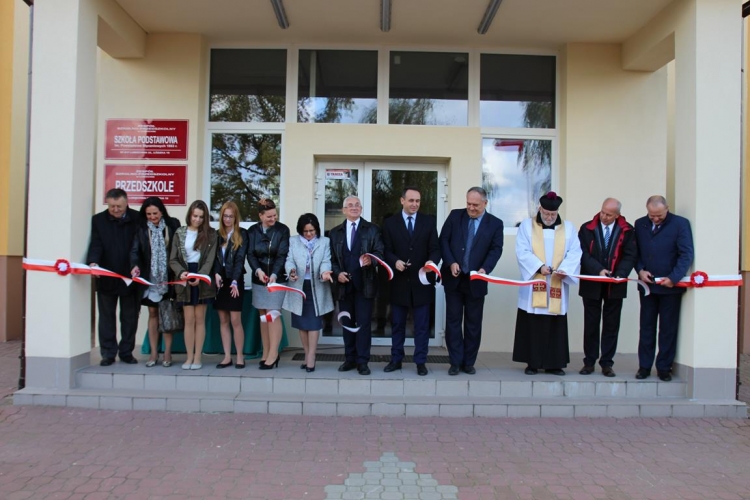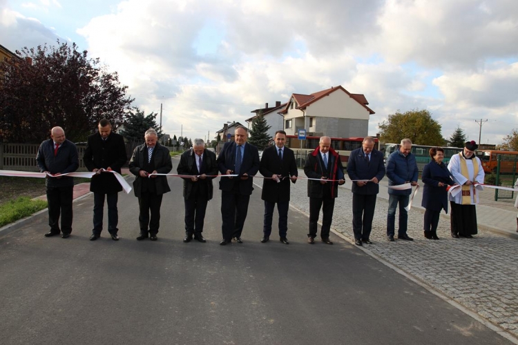 Uroczystość rozpoczęła się od powitania zaproszonych gości przez Wójta Gminy Tadeusz Józwika, który również podsumował zrealizowaną inwestycję oraz wręczył podziękowania za  pomoc i wsparcie gminnych działań, których efektem było pozyskanie środków finansowych na realizację inwestycji. Podziękowania otrzymali: Dariusz Klimczak - Wicemarszałek Województwa Łódzkiego, Witold Stępień – Marszałek Województwa Łódzkiego na ręce Arkadiusza Gajewskiego - radnego Sejmiku Województwa Łódzkiego oraz Wojewoda Łódzki Zbigniew Rau na ręce Marka Michalaka - dyrektora Wydziału Infrastruktury i Rolnictwa Urzędu Wojewódzkiego w Łodzi.