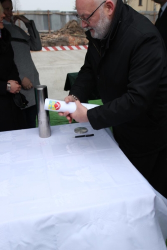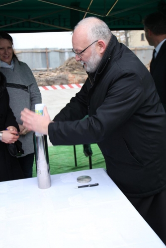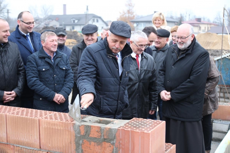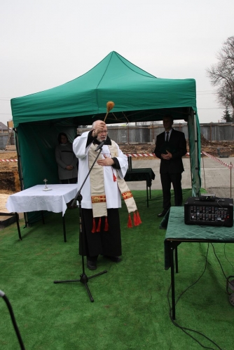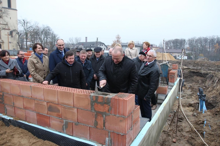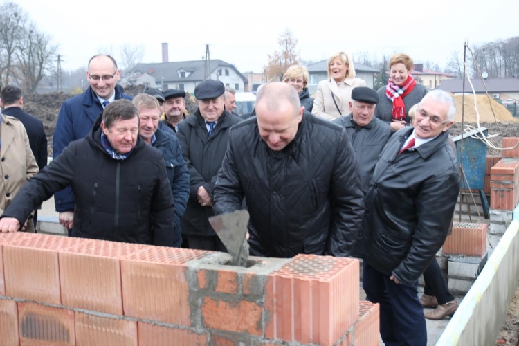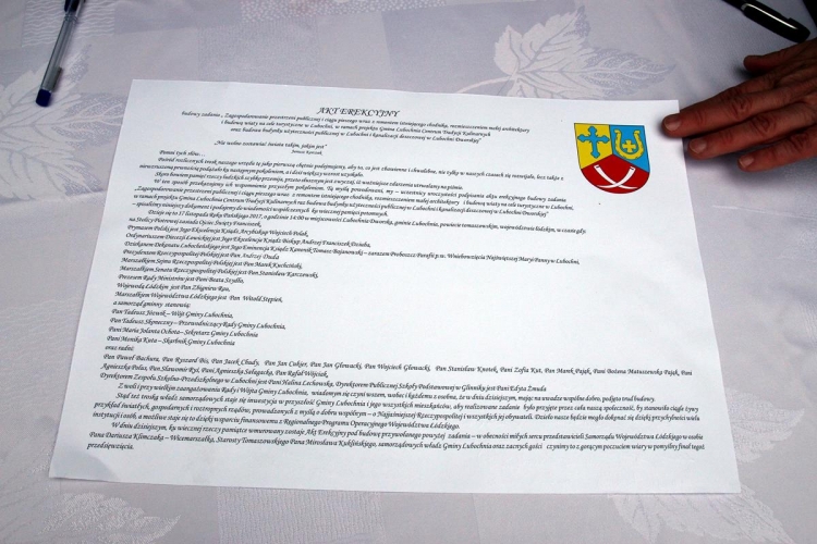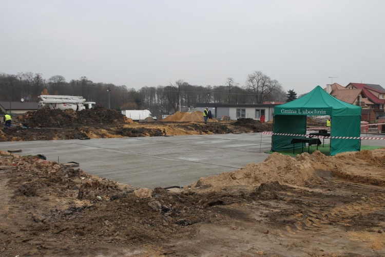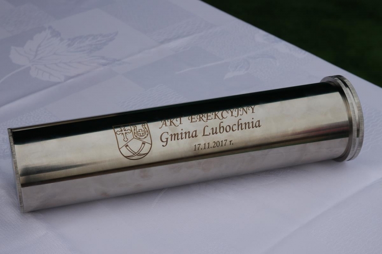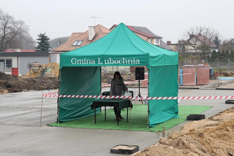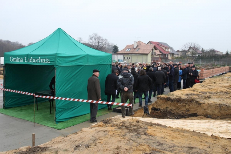 Plac budowy poświecił ksiądz Tomasz Bojanowski, proboszcz lubocheńskiej parafii. Następnie nastąpiła uroczystość wmurowania kamienia węgielnego. Do specjalnej tuby włożono akt erekcyjny podpisany przez władze Gminy Lubochnia, Wicemarszałka Województwa Łódzkiego, Starostę Tomaszowskiego oraz wszystkich obecnych. Do tuby włożono również aktualny numer gminnej gazetki, przemówienie wójta, zdjęcia składu radnych, zdjęcia z budowy oraz będące obecnie w obiegu pieniądze. Symbolicznego zamurowania dokonali wójt, wicemarszałek, starosta, przewodniczący Rady Powiatu, przewodniczący Rady Gminy, Proboszcz Parafii Lubochnia, wykonawca, projektant, likwidator oraz sołtys wsi Lubochnia i Lubochnia Dworska.