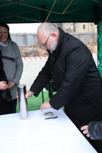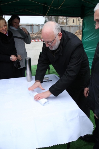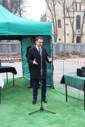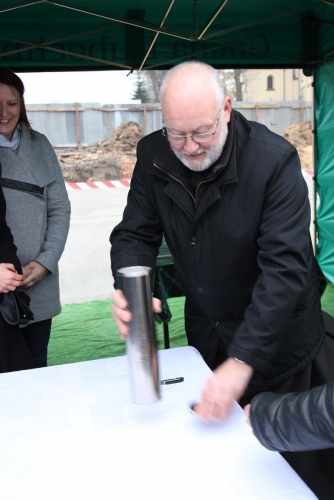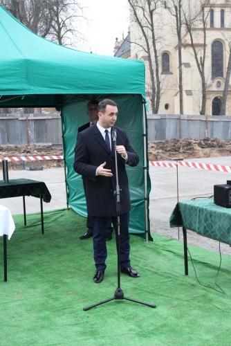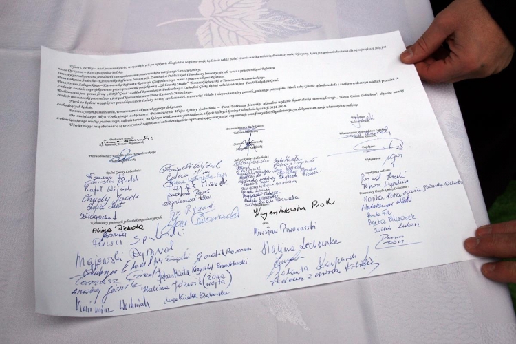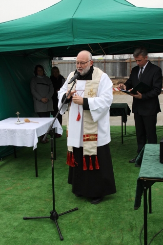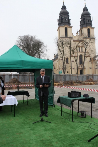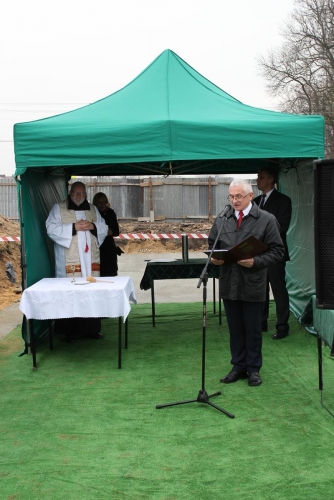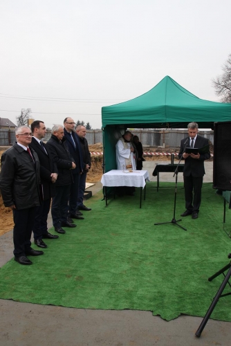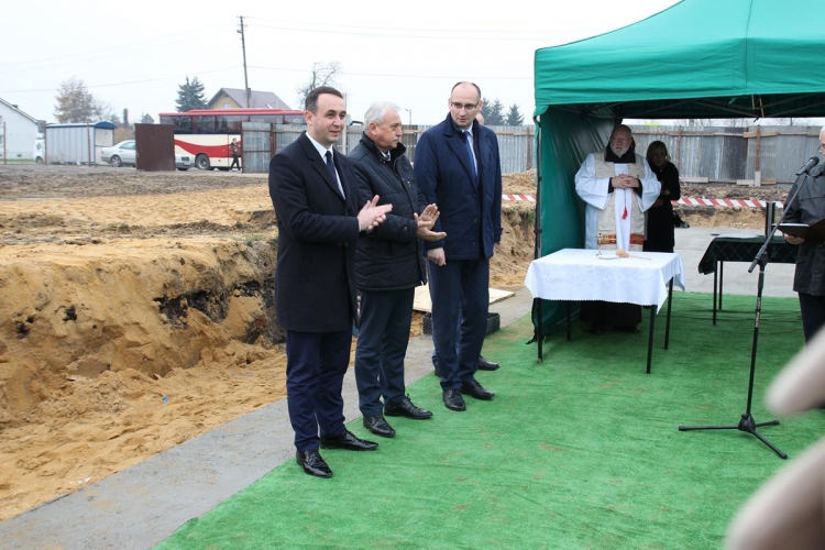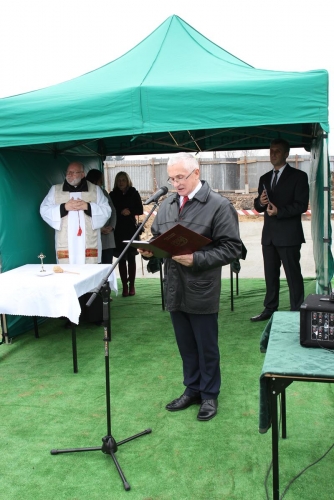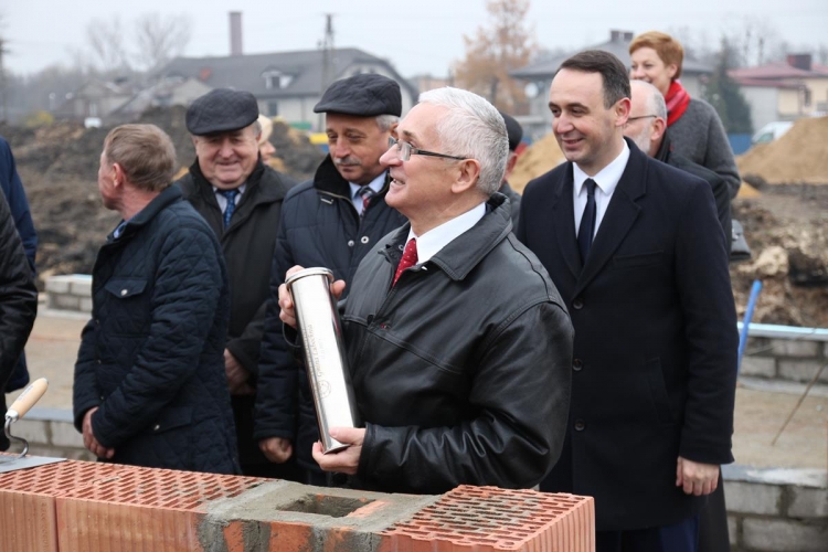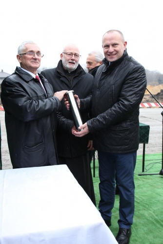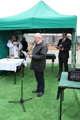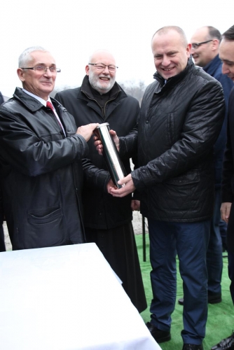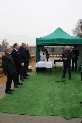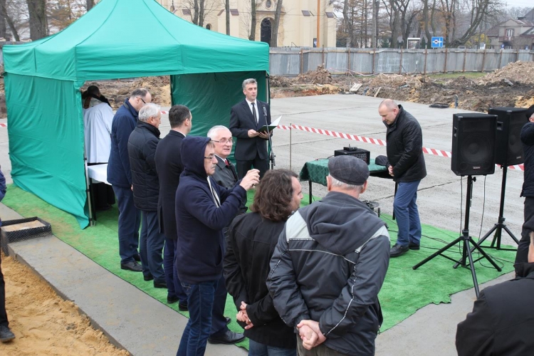 Wójt Gminy przywitał wszystkich przybyłych na uroczystość oraz przybliżył etapy odzyskania przez Gminę Lubochnia nieruchomości na którym realizowana jest obecna inwestycja. Podziękował Panu Dariuszowi Klimczakowi – Wicemarszałkowi Województwa Łódzkiego za ogromne wsparcie, i wielokrotnie udzieloną pomoc Gminie. Podziękował całej Radzie obecnej i poprzedniej kadencji na czele z Przewodniczącym – Panem Tadeuszem Skonecznym i byłym Przewodniczącym - Panem Piotrem Majchrowskim za bardzo dobre i mądre podejmowanie decyzji. Słowa podziękowania skierował również w stronę księdza Proboszcza Tomasza Bojanowskiego, za osobiste zaangażowanie i wsparcie działań władz Gminy.