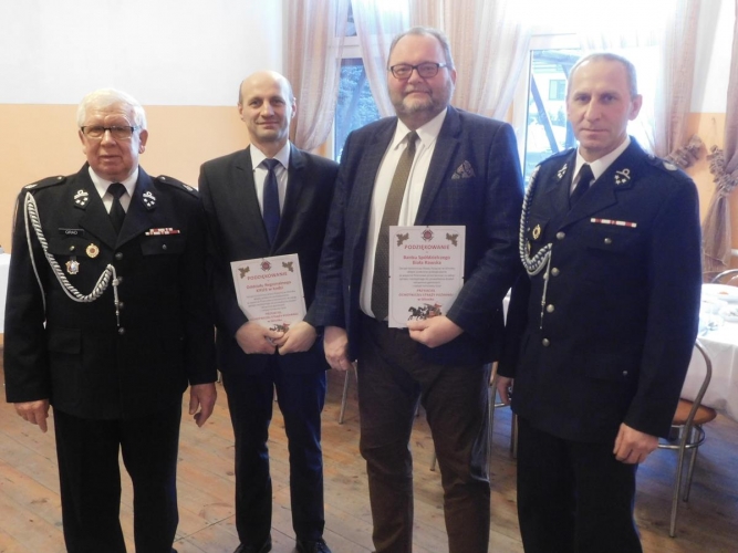 Podczas dyskusji głos zabrali zaproszeni goście oraz nastąpił najbardziej oczekiwany moment a mianowicie przekazanie przez sponsorów sprzętu. Dyrektor Pan Jacek Ziemnicki przekazał na ręce Naczelnika ubranie specjalne ufundowane przez Zarząd Banku Spółdzielczego w Białej Rawskiej, następnie Kierownik KRUS Pan Szczepan Goska przekazał naszej jednostce torbę do zestawu PSP R-1. Była jeszcze jedna niespodzianka a mianowicie nieobecny na zebraniu właściciel firmy reklamowej M3Media Pan Radosław Bernaciak ufundował dla naszych druhów 30 koszulek typu tshirt. Wszyscy sponsorzy otrzymali okolicznościowe podziękowania i tytuł honorowy "Przyjaciela OSP Glinnik".