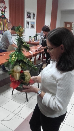 Podczas warsztatów panie, które przybyły pod okiem instruktora tworzyły piękne kompozycje kwiatowe i dekoracje jesiennozimowe. Wszystkie prace i kompozycje udały się znakomicie ,a uczestniczki zajęć były zadowolone ze swoich przepięknych prac i pomysłów, które przedstawiły na warsztatach.