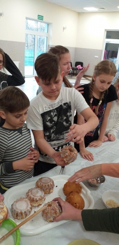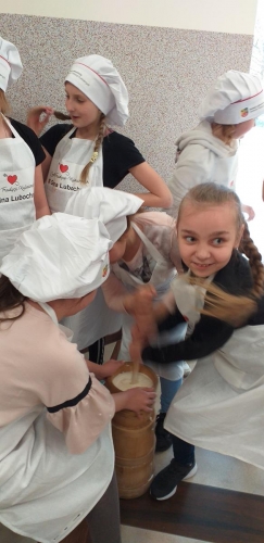 Dzieci w wieku od 6 do 12 lat, uśmiechnięte, zadowolone i pełne zapału do pracy, rozpoczęły swoją małą przygodę kulinarną. Podczas  warsztatów  samodzielnie ubijały masło i formowały z niej osełkę. Ponadto piekły babki wielkanocne i zajadały się pysznym wiejskim chlebem, z wcześniej już ubitym masłem. Dzieci zgodnie stwierdziły, że samodzielnie przygotowany posiłek smakuje najlepiej, a słodkie wypieki w postaci bab wielkanocnych uczestnicy warsztatów mogli zabrać ze sobą do domu.