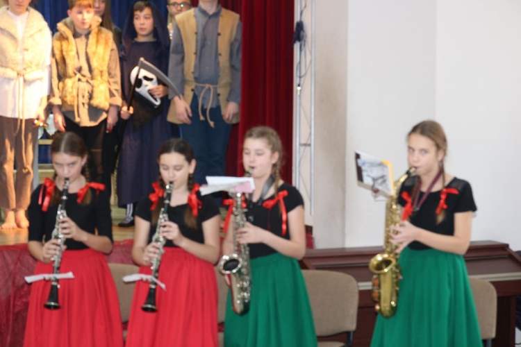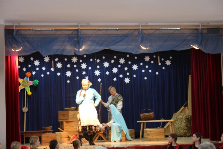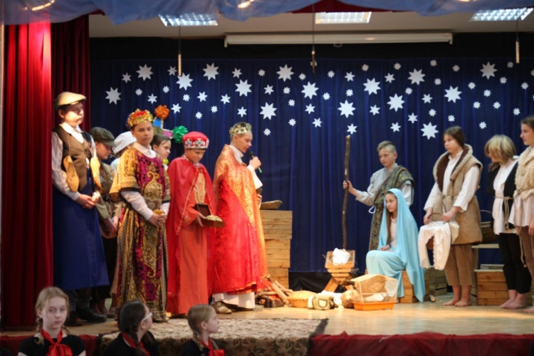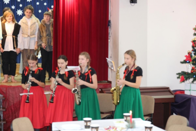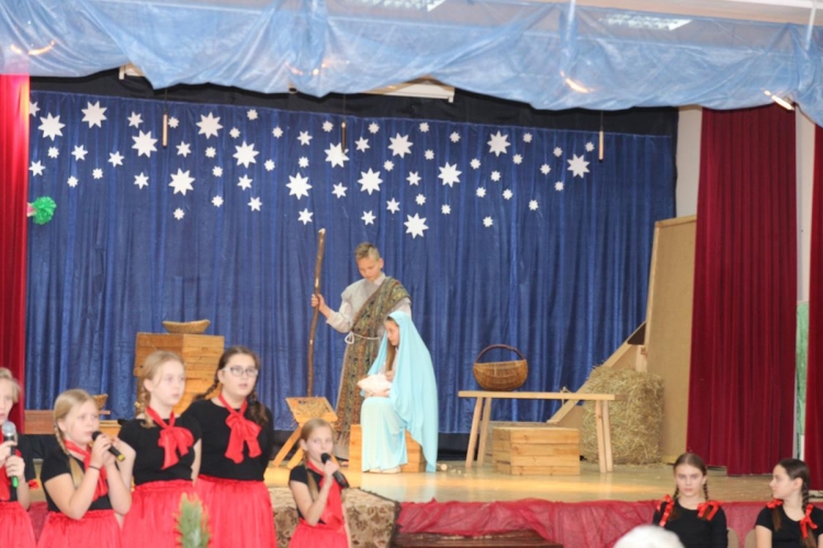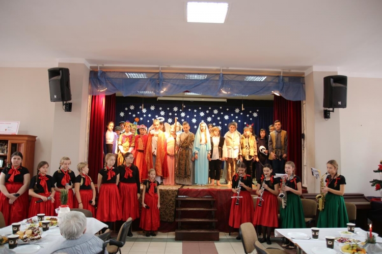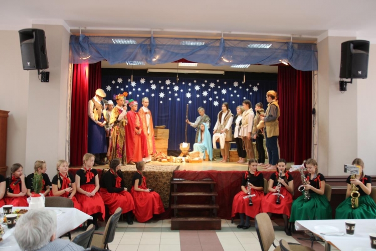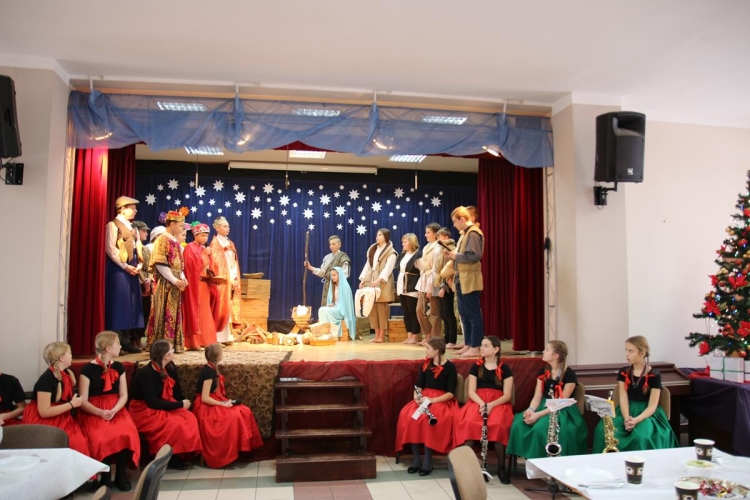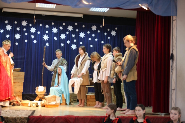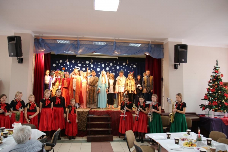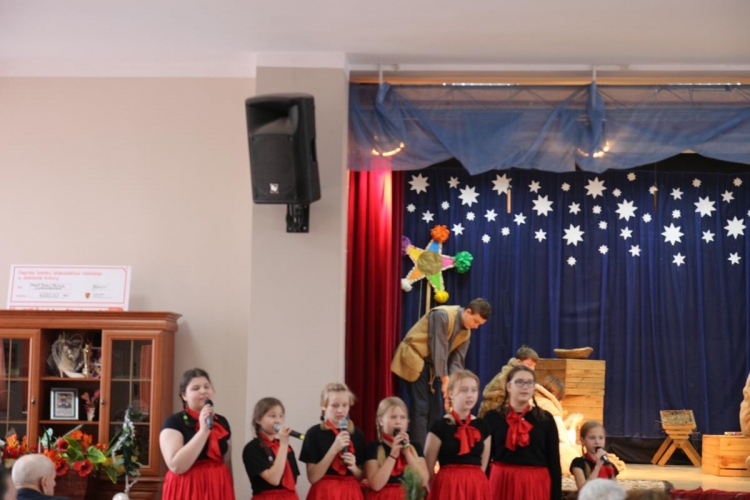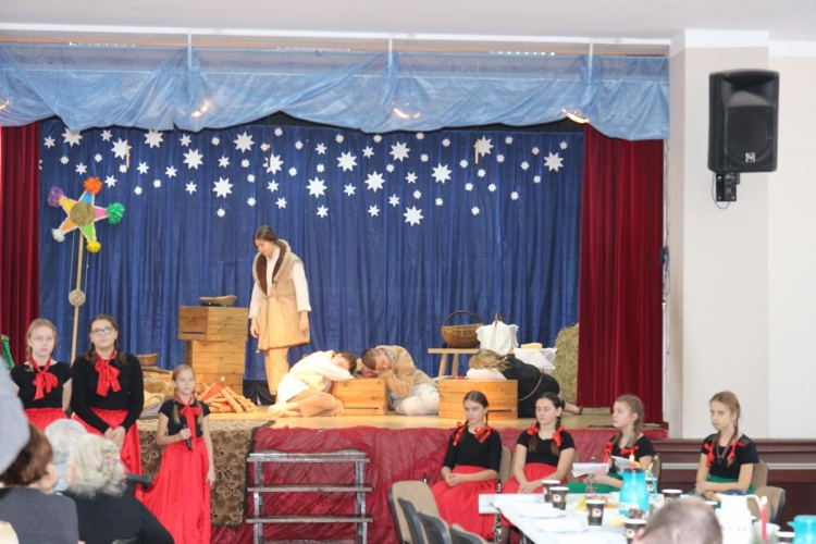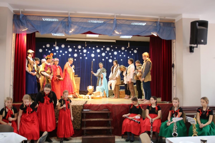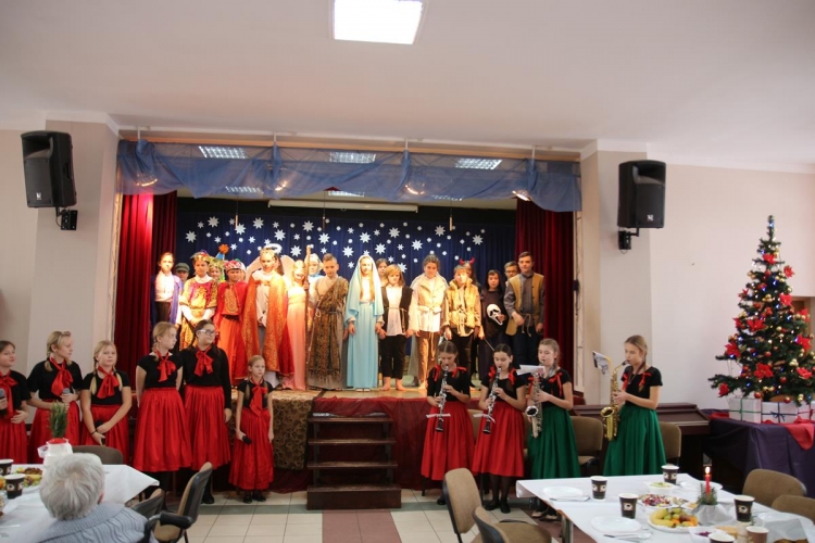 Wigilia rozpoczęło się jasełkami „Betlejem polskie” wg Lucjana Rydla w wykonaniu uczniów z Zespołu Szkolno-Przedszkolne w Lubochni. Występ ten wprowadził wspaniały, świąteczny nastrój wśród wszystkich uczestników. Młodzi  artyści, występujący na scenie przedstawili nam przepiękny program o narodzinach Jezusa. Ogromne słowa uznania należą się autorom jasełek za ich przygotowanie, wyjątkową scenografie, piękne kostiumy oraz  wspaniałe wykonanie.