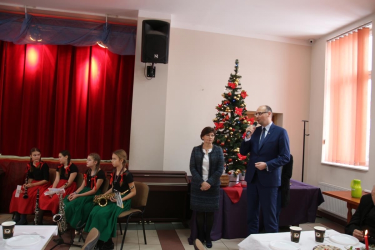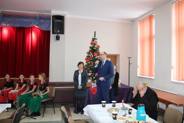 Wójt Gminy  Pan Piotr Majchrowski złożył wszystkim najlepsze życzenia bożonarodzeniowe i noworoczne. Następnie Proboszcz Parafii Lubochnia ks. Dziekan Tomasz Bojanowski zaprosił wszystkich zebranych do wspólnej modlitwy, która stała się wstępem do wzajemnego składania życzeń oraz łamania się opłatkiem.