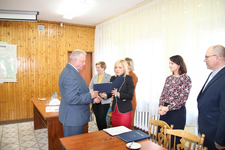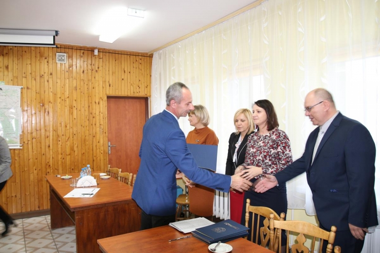 Pan wójt oraz radni przyjęli gratulacje i życzenia sukcesów na najbliższą kadencję, złożone przez Przewodniczącą Gminnej Komisji Wyborczej panią Anetę Fik i Sekretarz Gminy panią Jolantę Ochota.