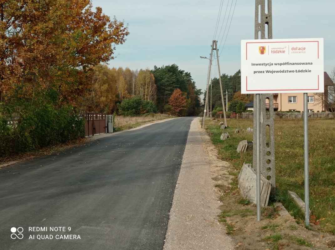 Zrealizowana inwestycja oznakowana została tablicą informacyjną umieszczoną na początku odcinka zmodernizowanej drogi, przy włączeniu do drogi powiatowej nr 4313E. Wykonawcą tablicy była firma M3MEDIA Radosław Bernaciak z Tomaszowa Mazowieckiego.